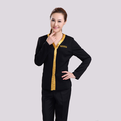 產品名稱:雀巢定制V領黑色長袖促銷服