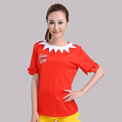 產品款式:紅色短袖T恤配黃色修身長褲休閑版運動套裝