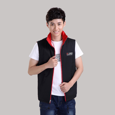 開身拉鏈立領馬夾,可雙面穿著。一面為防風防雨涂層面料,一面為純棉紗卡面料,可根據不同場合交替穿著。