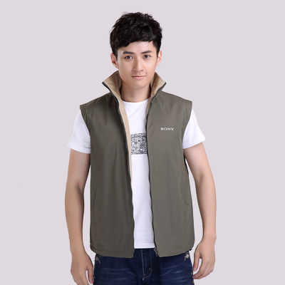 雙面穿馬甲,給您不一樣的雙面感受,一面為防風防雨涂層面料,一面為純棉紗卡面料,可根據不同場合交替穿著。 色彩簡單,美觀時尚。簡潔的立領,既可作為立領又可作翻領,搭配隨心所欲,更顯俏皮時尚,增添了另樣風采,立領穿差翻領的設計,休閑大氣。拉鏈采用高耐磨拉鏈,結實耐用,穿脫方便。兩側的口袋,小巧隨性,可以放隨身小物品,時尚實用。整體款式將運動與時尚相結合,款式新穎,剪裁大方,交運動,時尚,休閑,完美的融為一體。衣服左胸、右胸、后背等位置均可放置logo,彰顯企業風采。