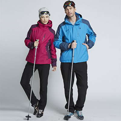前身分上下節,下節兩側有挖袋,袋口裝防水拉鏈,左側有胸袋,裝拉鏈。拼色插肩袖,袖口緊口,裝魔術貼及橡筋。立領,可摘帽子,拉鏈連接。門襟內裝拉鏈,釘順色四合扣。內有搖粒絨內膽,可脫穴,具有防風保暖功能。