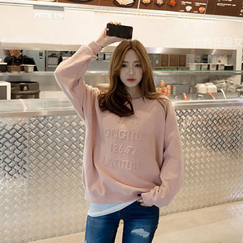 產品名稱:韓版時髦百搭衛衣寬松長袖衛衣外套 親身凸版印花衛衣