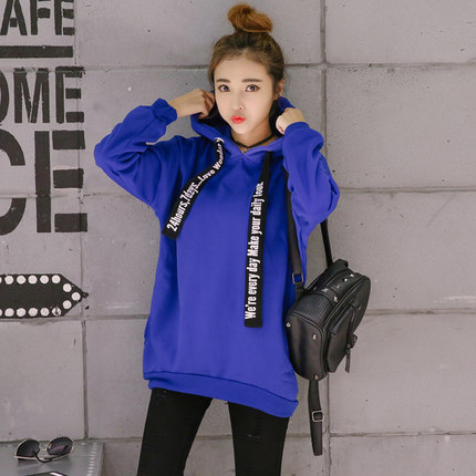 產品名稱:加絨加厚連帽衛衣女士韓版女裝新款寬松純色中長款潮學生