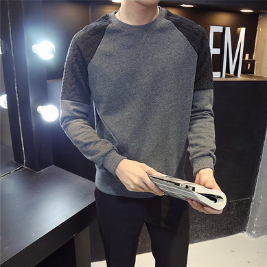 產品名稱:港仔風男士修身拼接加絨加厚 圓領冬裝衛衣青年套頭上衣