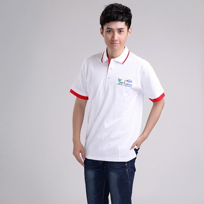 產品款式:翻領拼色短袖前胸刺繡夏季男士t恤衫廣告衫