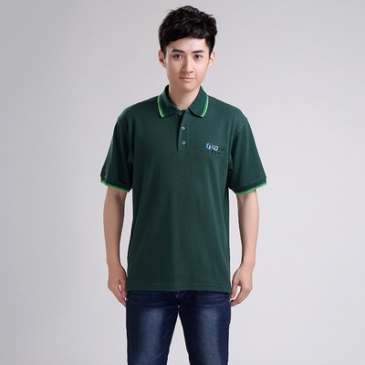 產品名稱:綠色短袖翻領前胸刺LOGO廣告T恤衫