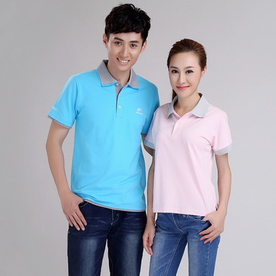 產品款式:純色短袖翻領套頭t恤廣告衫男女款