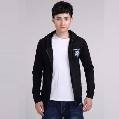 產品款式:”超級減肥王“黑色連帽長袖開衫男衛衣