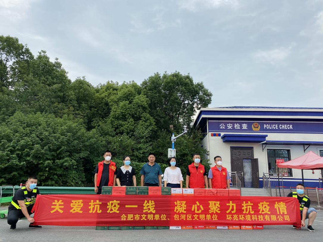 2022年7月25日下午,環亮環境科技有限公司與包河區文明辦副主任周陽一行,前往方興大道高速口防疫點,為堅守一線的工作人員和防疫志愿者送去了礦泉水、方便面等物資。在現場,副主任周陽向環亮環境科技有限公司頒發了榮譽證書,鼓勵我司再接再厲。